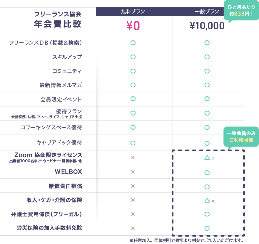 フリーランス協会のベネフィットプランは、100社を超える賛助企業の皆様のご厚意により成り立っている、国内唯一の安心でお得な制度です。ぜひご入会ください。